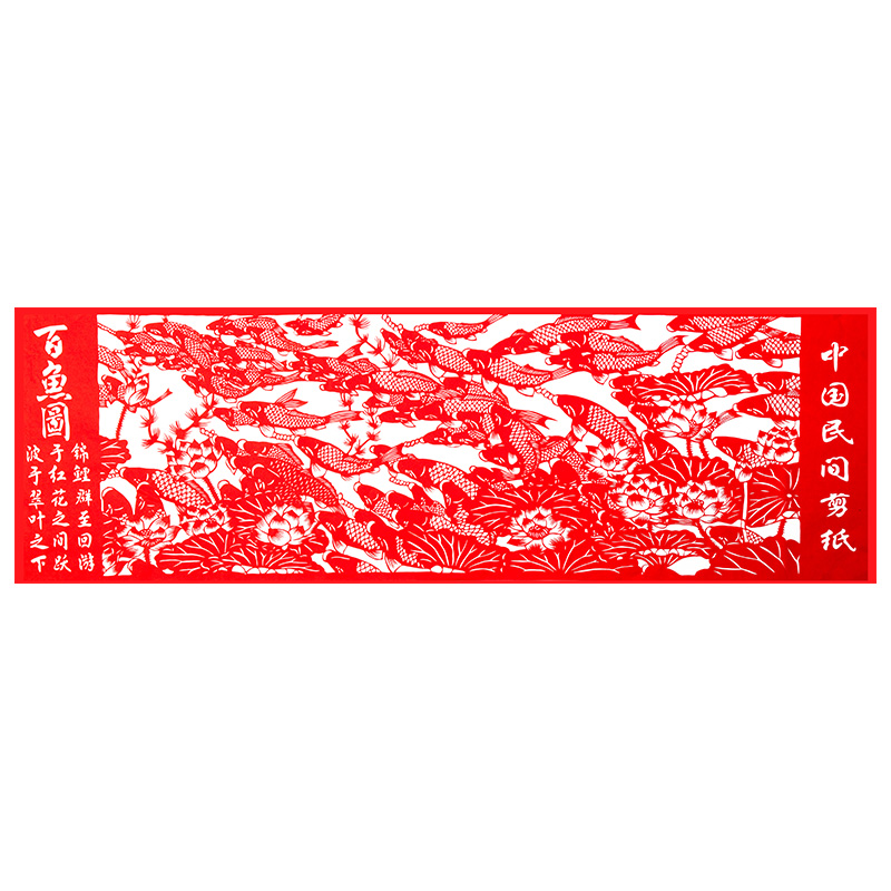 Chinese wind pure hand cut paper bottom draft pattern paper engraving 100 fish picture hollowed-out window flower material big full cut paper material