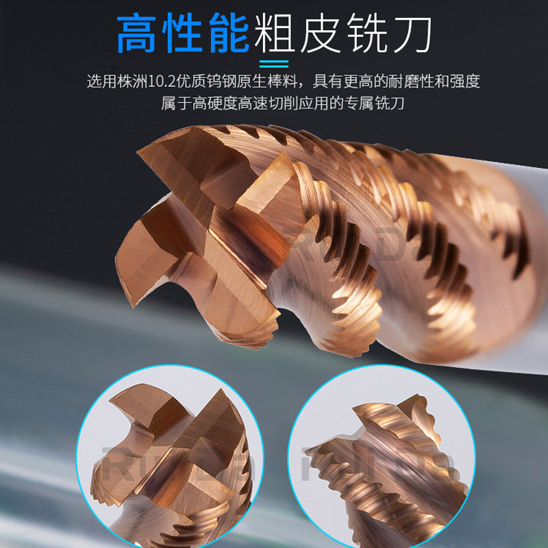 Imported 55-degree 4-blade tungsten steel rough leather milling cutter steel with open rough milling cutter lengthened coating wave edge corrugated rough end mill