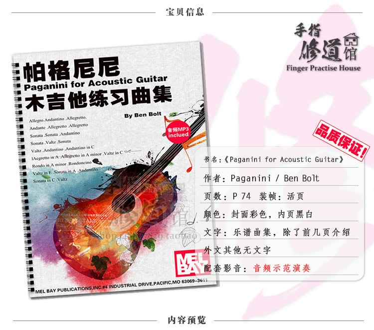Paganini Acoustic Guitar Etude Collection Quick Play Textbook Guitar Spectrum Tutorial Acoustic Guitar Skills Training Book