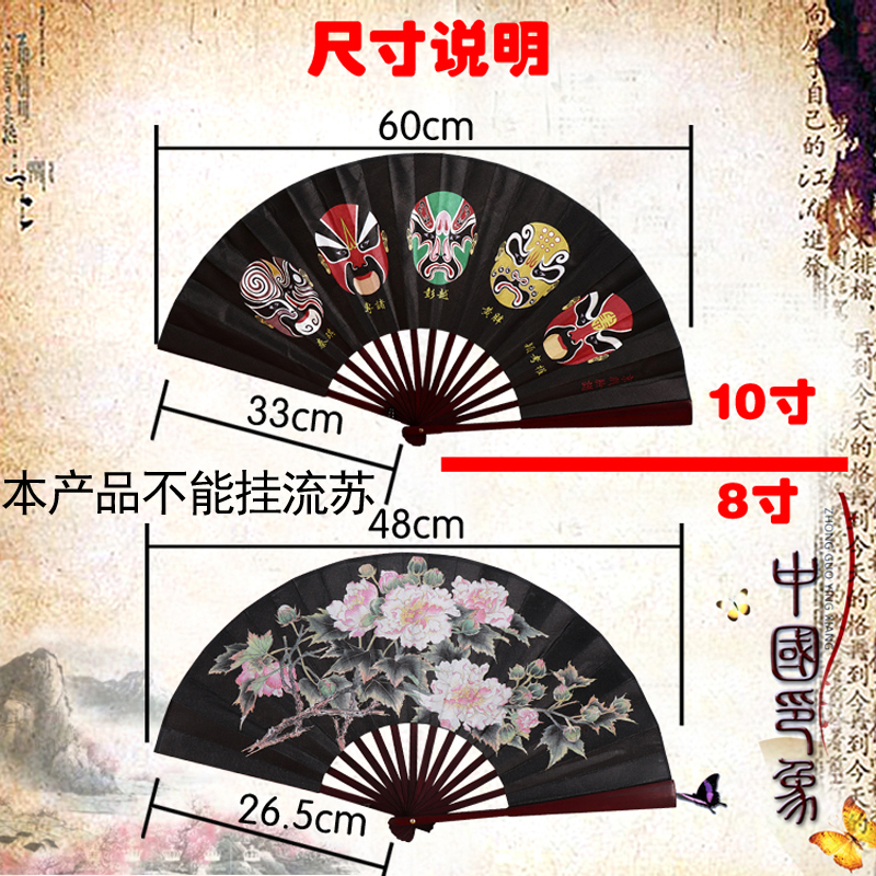 Cloth folding fan double-sided peony flowers and birds 10 inches 8 inches 9 inches ancient style Beijing opera opera dance performance classical beauty cloth fan