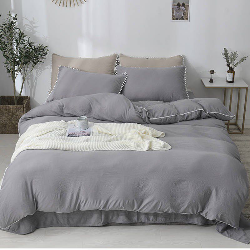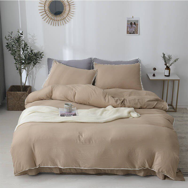 Spring and Autumn New Soft Four Pieces of Washing Cotton Set Single-Color Double Student Bed Supplies
