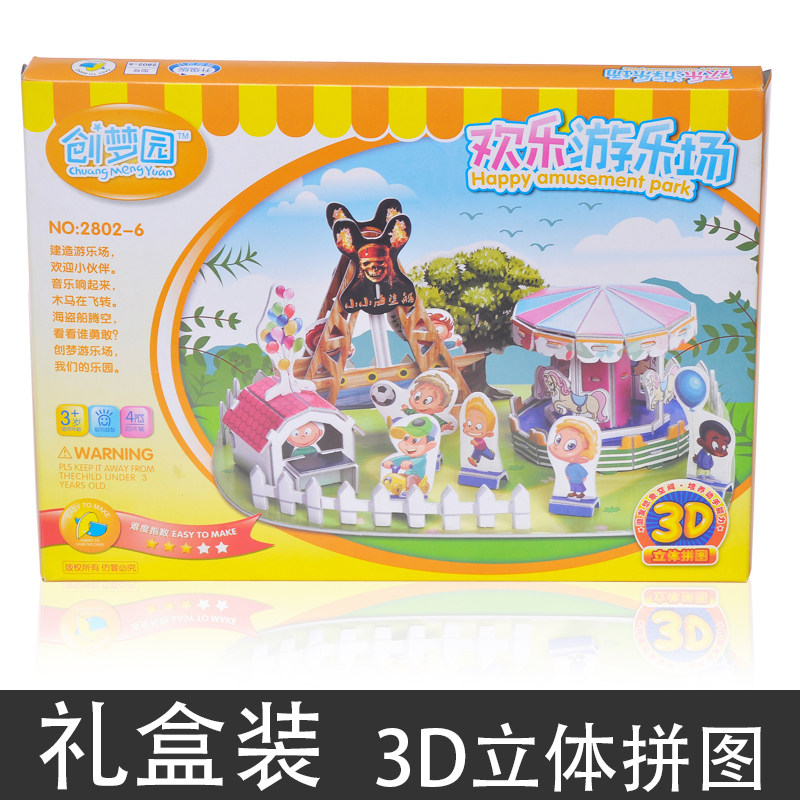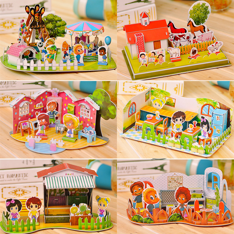 3D Solid Jigsaw Puzzle Playground Children Handmade Toys Small Farm Paper Building Dining Hall Supermarket Florist Home Puzzle