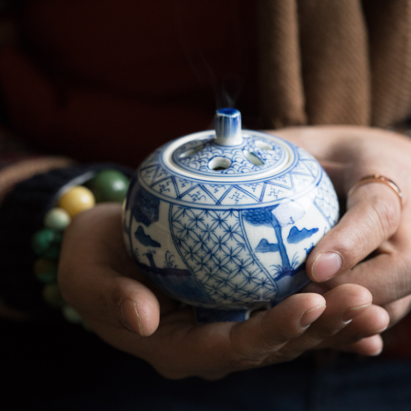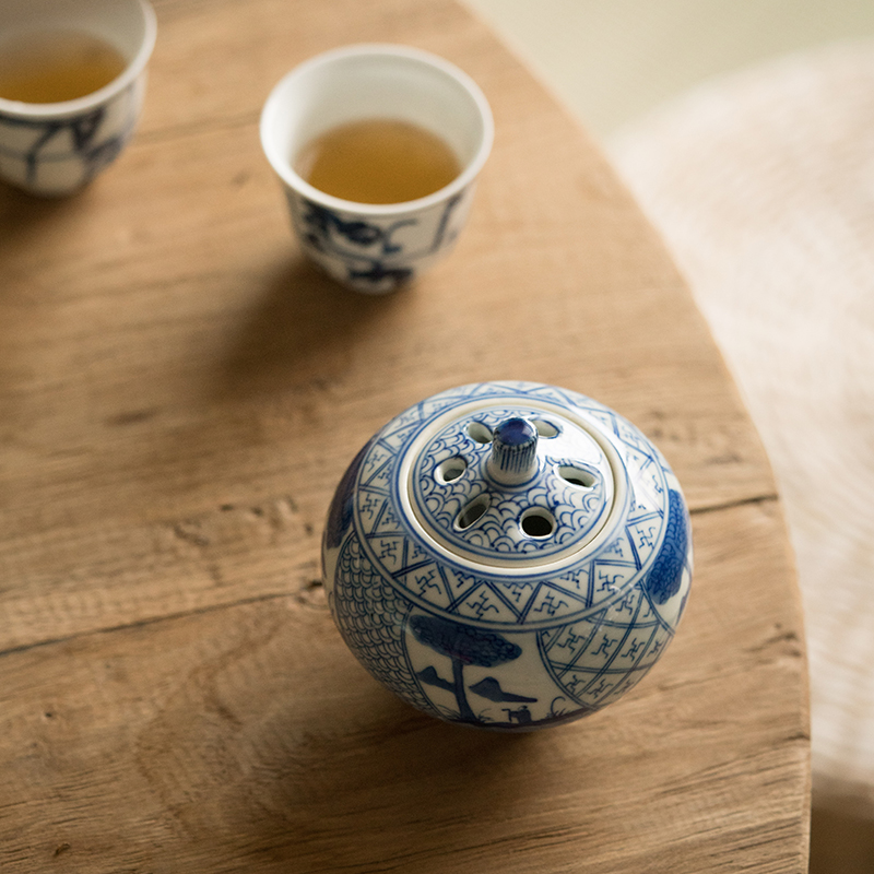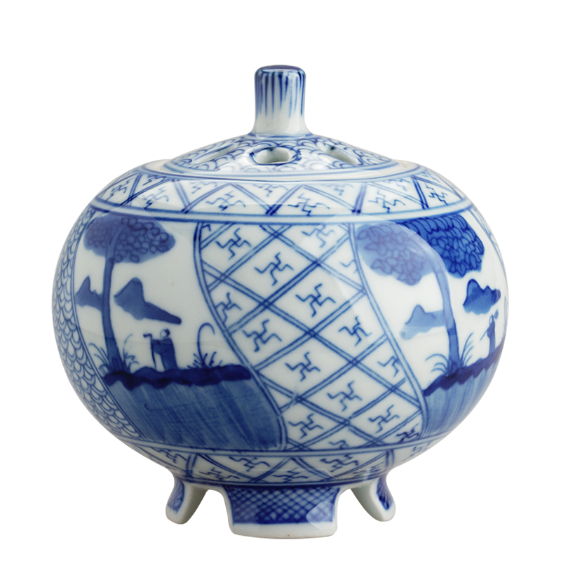 The Bucket Room Case in Jingdezhen antique hand painted green flower ceramic incense stove Wuliang Tai Fu Fu Fu Restoration Ancient Home Worshipers