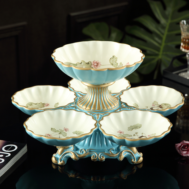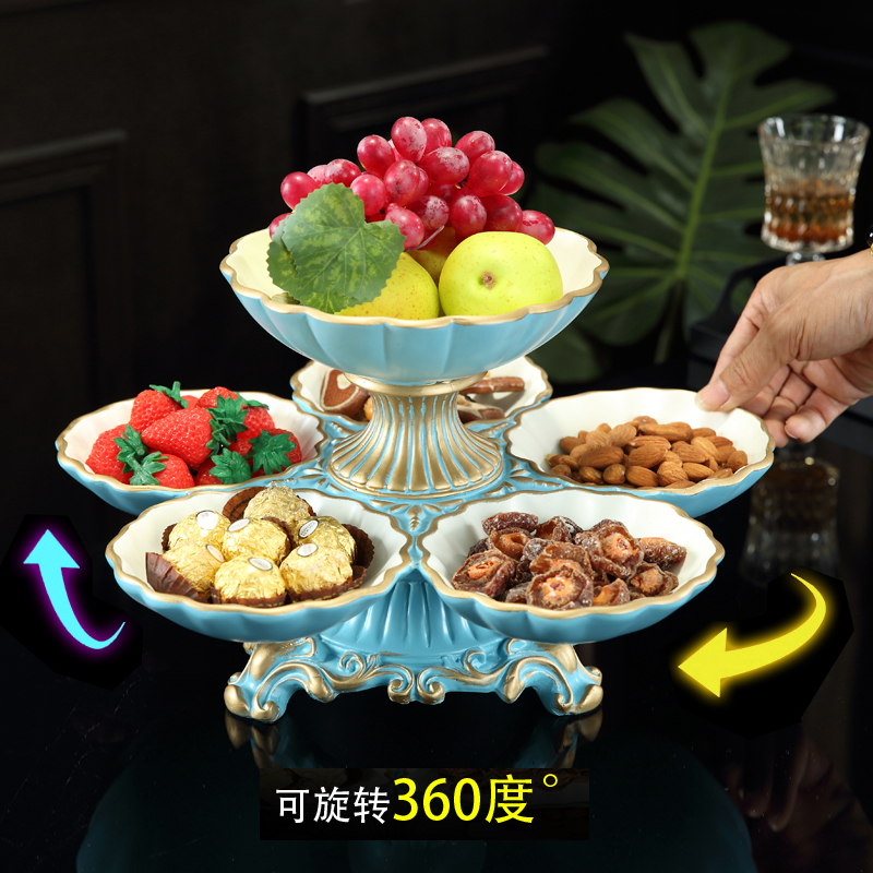 European-style rotating double-layer fruit plate American creative fruit plate dried fruit plate living room coffee table home decoration luxury fruit bowl