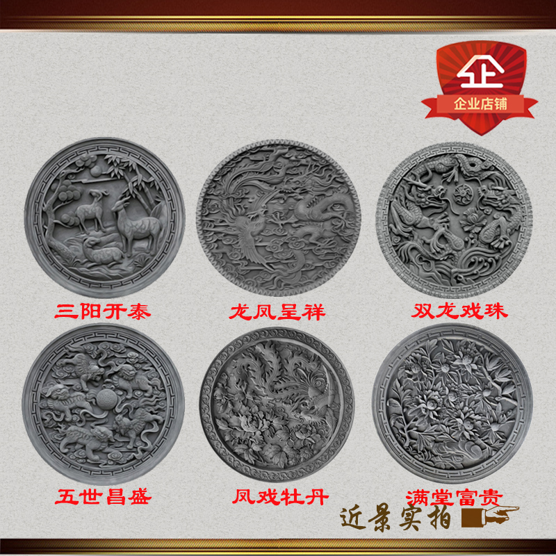 Round Brick Sculpture Chinese Imitation Antique Fu Peony Lotus Flower Emblem of the Four Courtyard Courtyard of the courtyard The ancient construction of a circular allegory relief flower