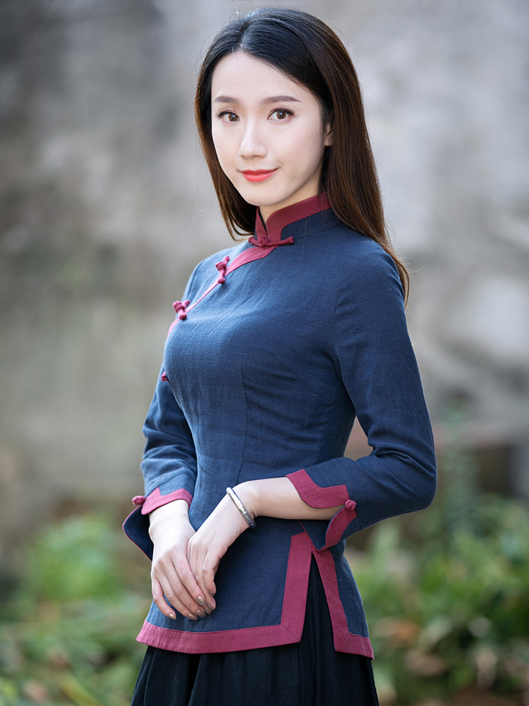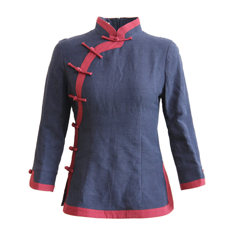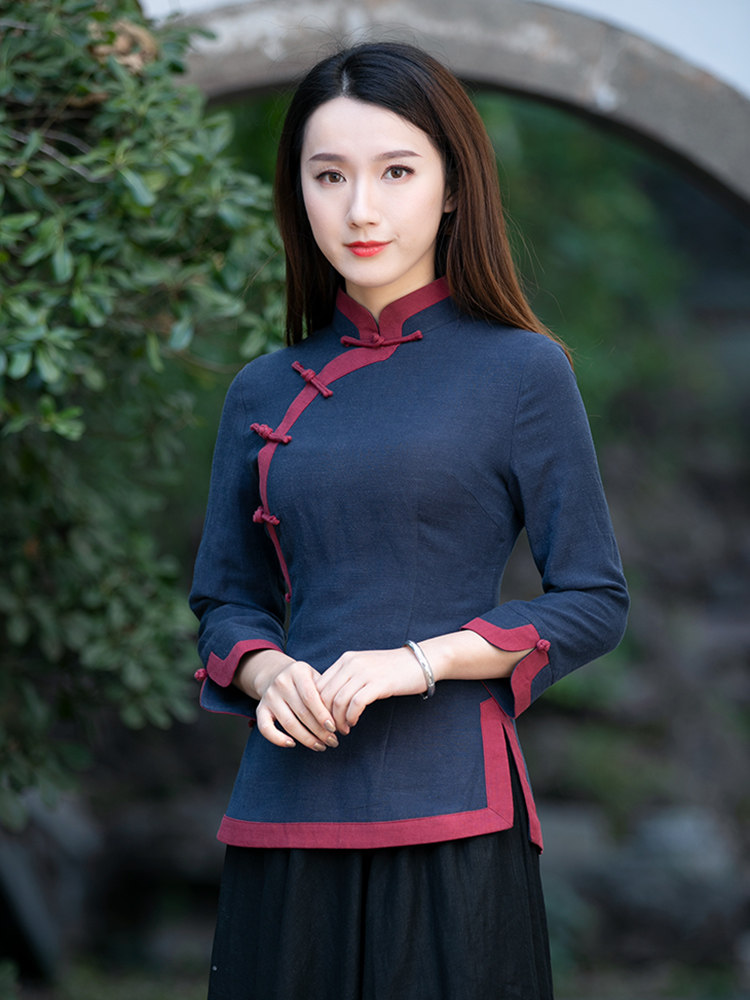 Don installed female Chinese Wind National Wind blouses Long sleeves Less Grandma Dress Temperament Tea Arts Division Wind Retro Women's Clothes