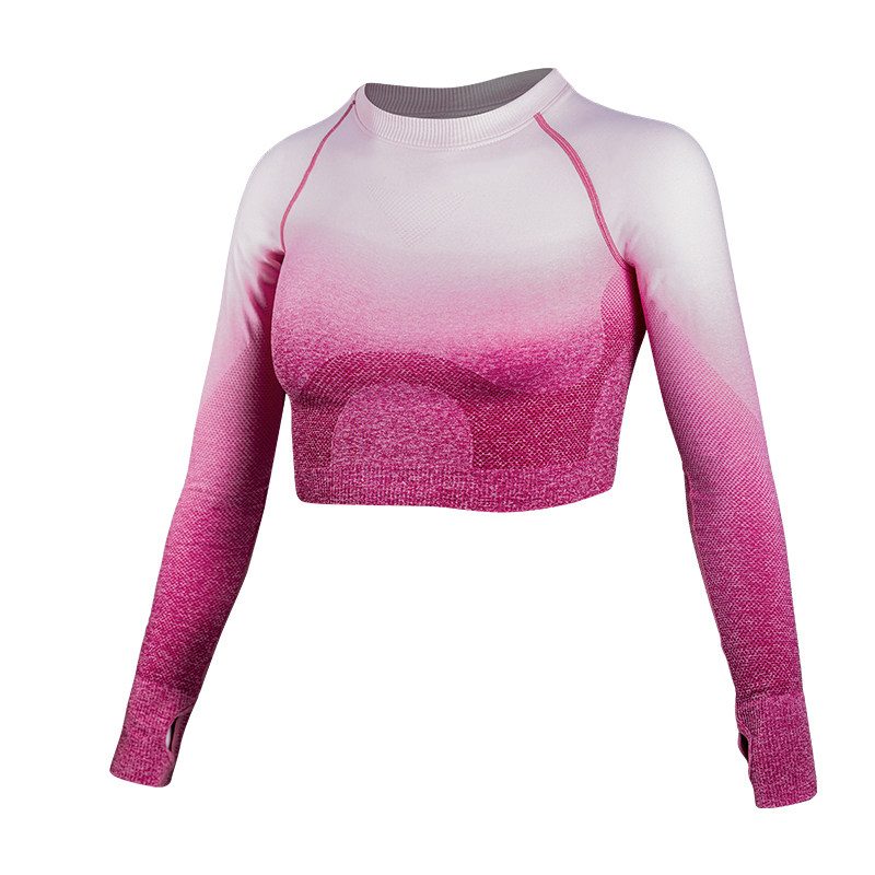 Gradient Yoga suit women tops long sleeves fashionable exposure navel thin professional training suit running net red fitness suit
