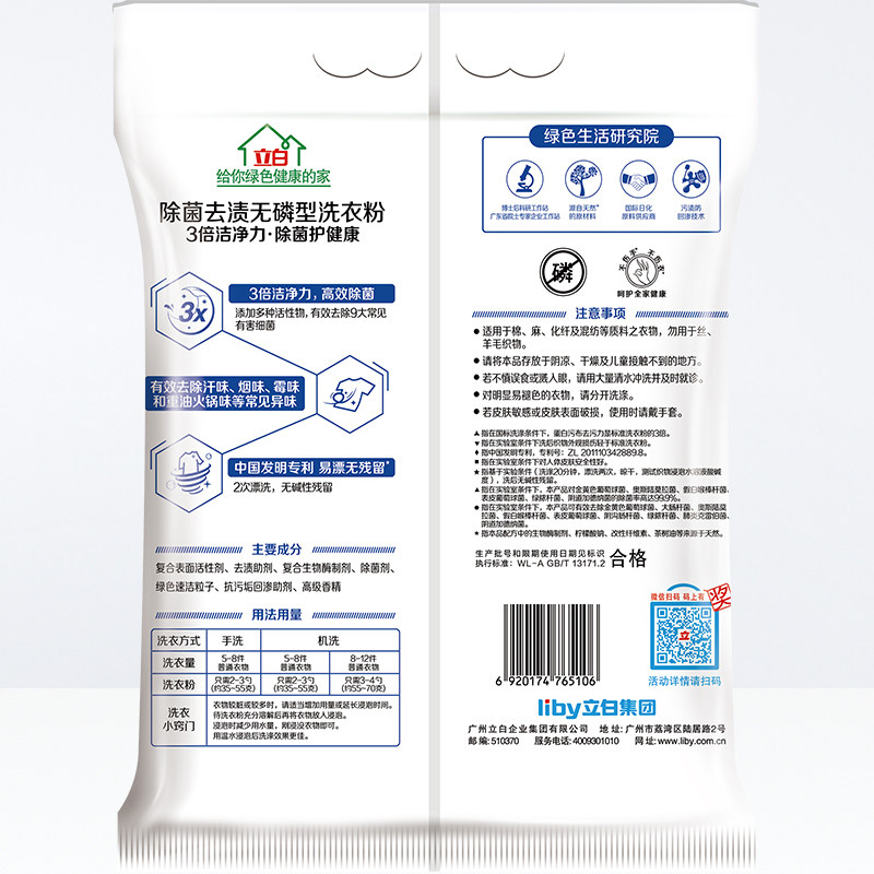 Libai natural laundry detergent 3.7KG bag large packaging sterilization and stain-free fragrance lasting