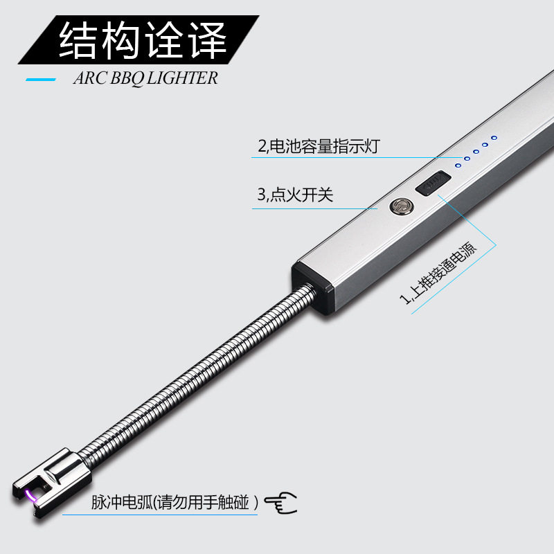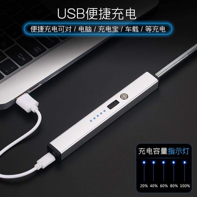 USB Charging Pulse Ignition Gun Stick Kitchenette Long Handle Incense Candle Electronic Arc Batter Fire Thever Coal Gas Stove