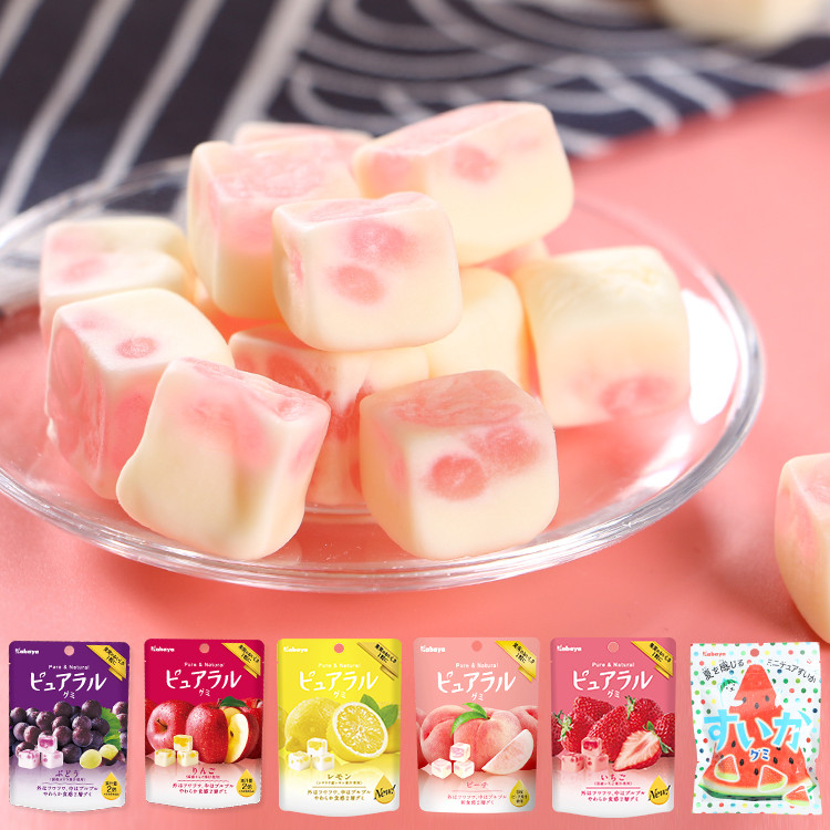 2 bags of Japanese imported Kabaya white peach apple grape lemon flavor sandwich fudge fruit juice candy 45g