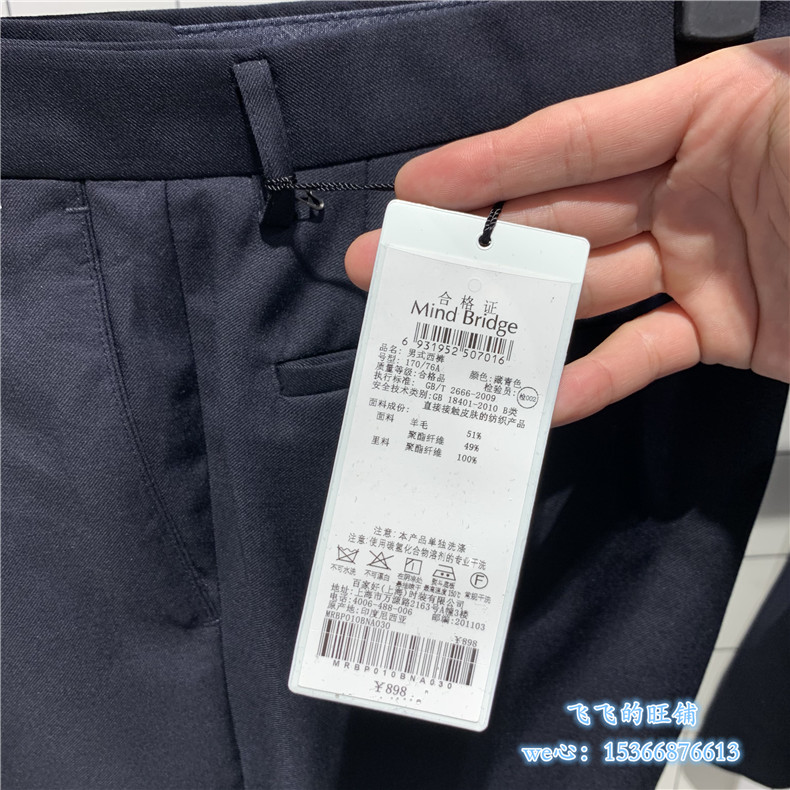 Mind Bridge men's spring Korean edition business fashion handsome pants men's pants MRBP010B-898