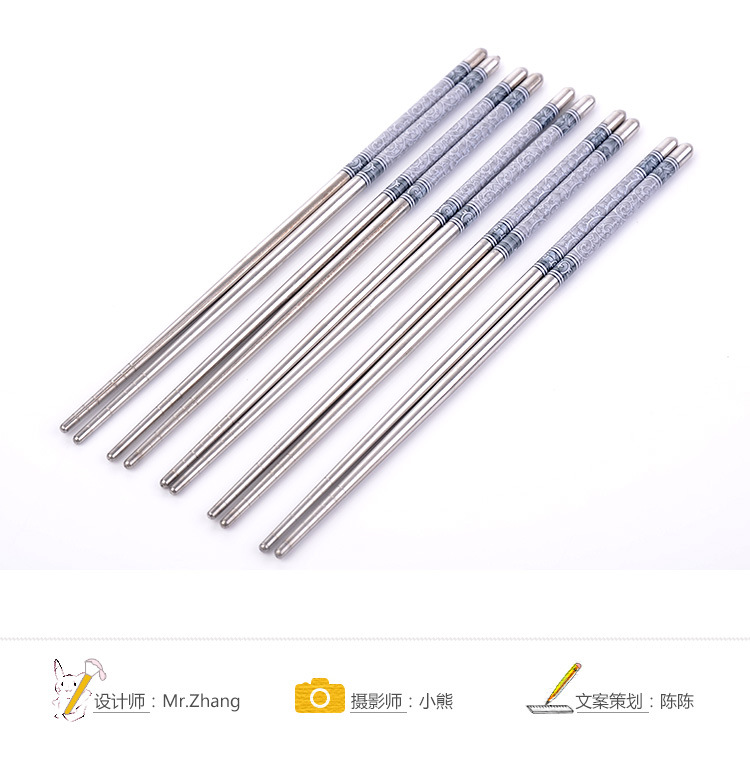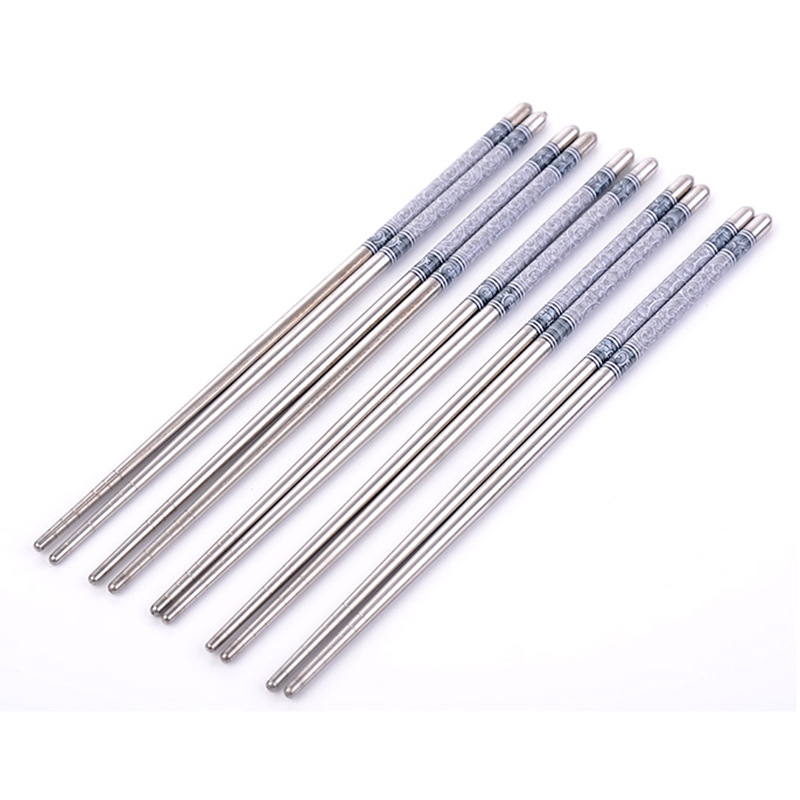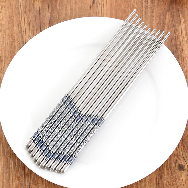 10 pairs of stainless steel household non-slip blue and white porcelain stickers deep-fried fast food set family tableware personality pointed iron chopsticks