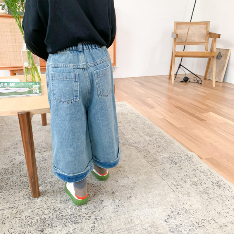 Kids Wide Leg Jeans Spring 2020 New Men and Women Korean Version Of Exotic Fashion Jeans Baby Cropped Pants
