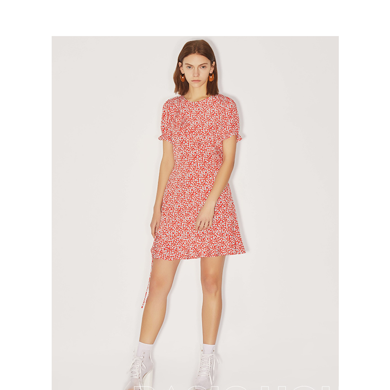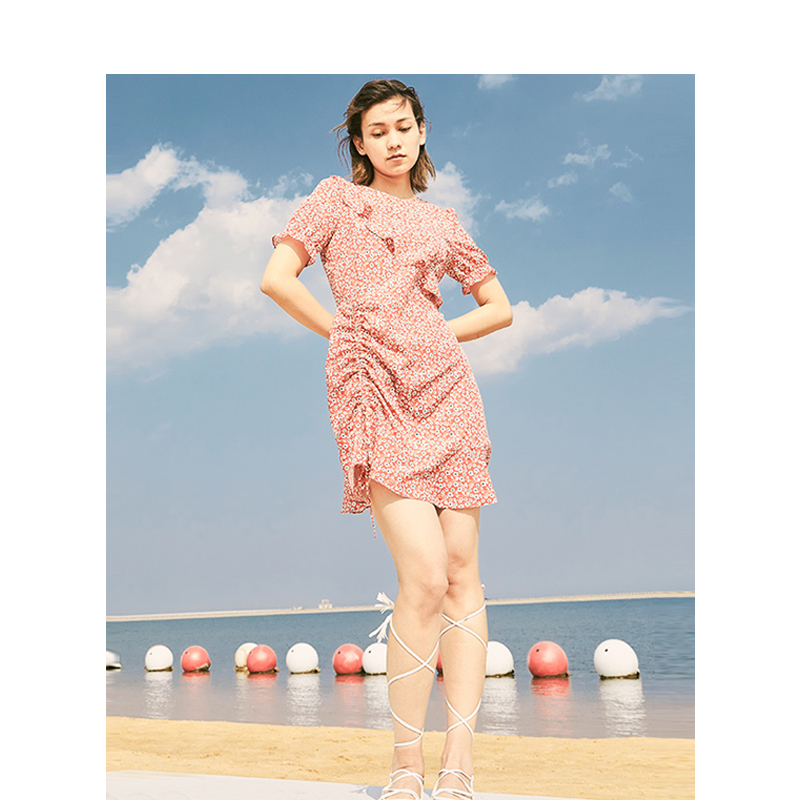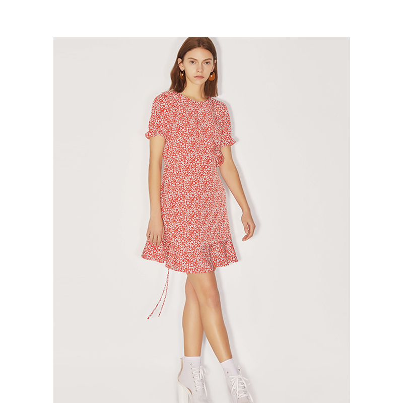 Basic House Buddy Good women's dress Summer Elegant Breeze Cool and Chopped Flowers Short Sleeves Fishtail Ocean Dress HUOP328G