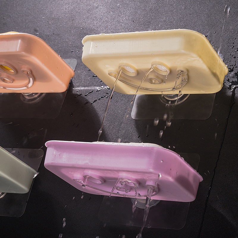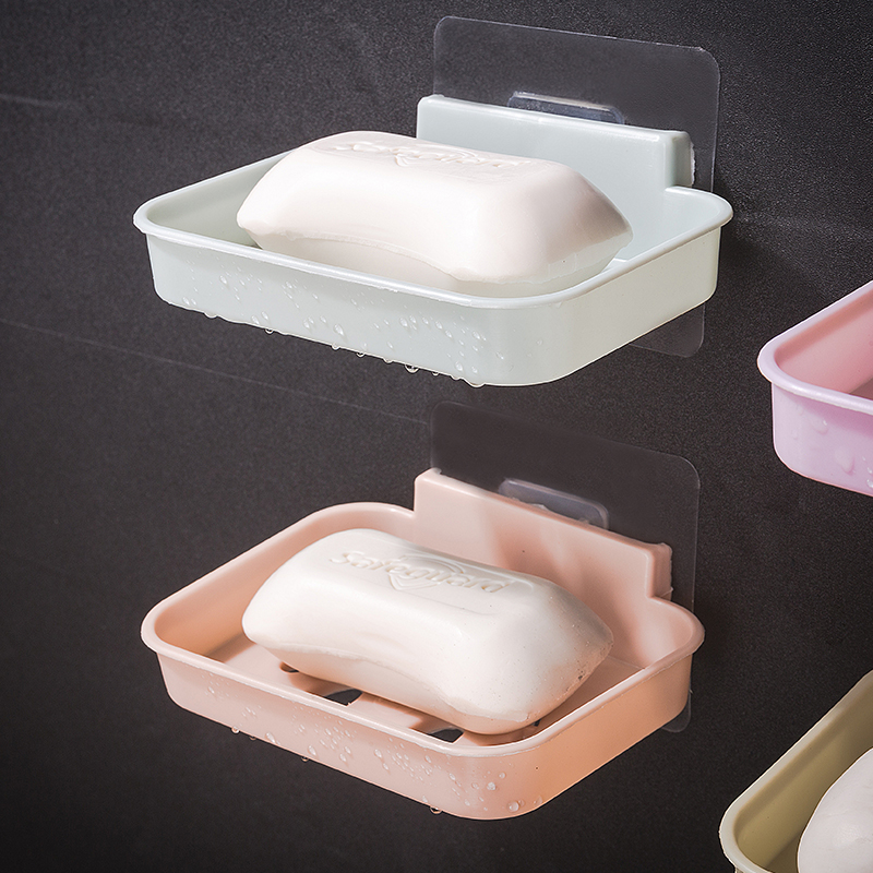 Bathroom soap box sucker wall-mounted drain soap box powder room rack self-adhesive punch-free large soap rack