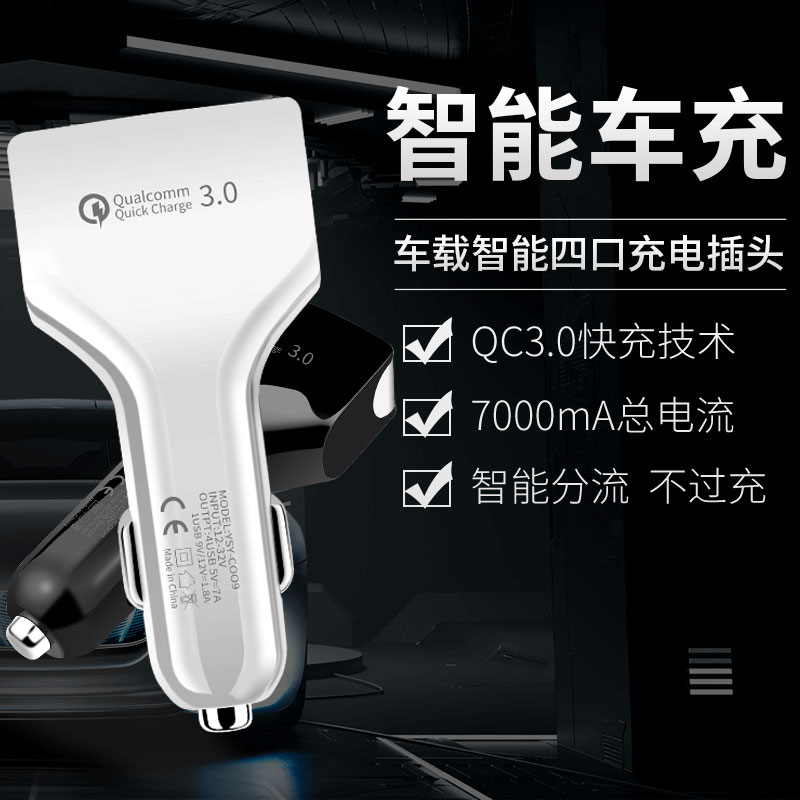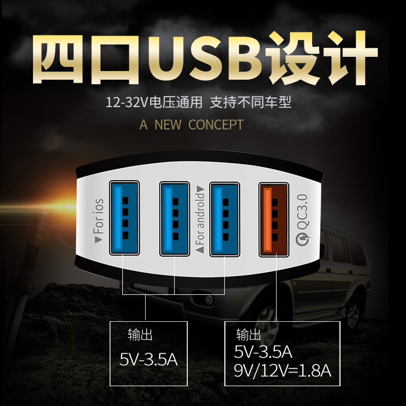 Car charger one drag three or four car supplies multi-function cigarette lighter conversion plug usb smart fast charge fast one drag two cigarette port 3A mobile phone charging head expansion port 12V24V