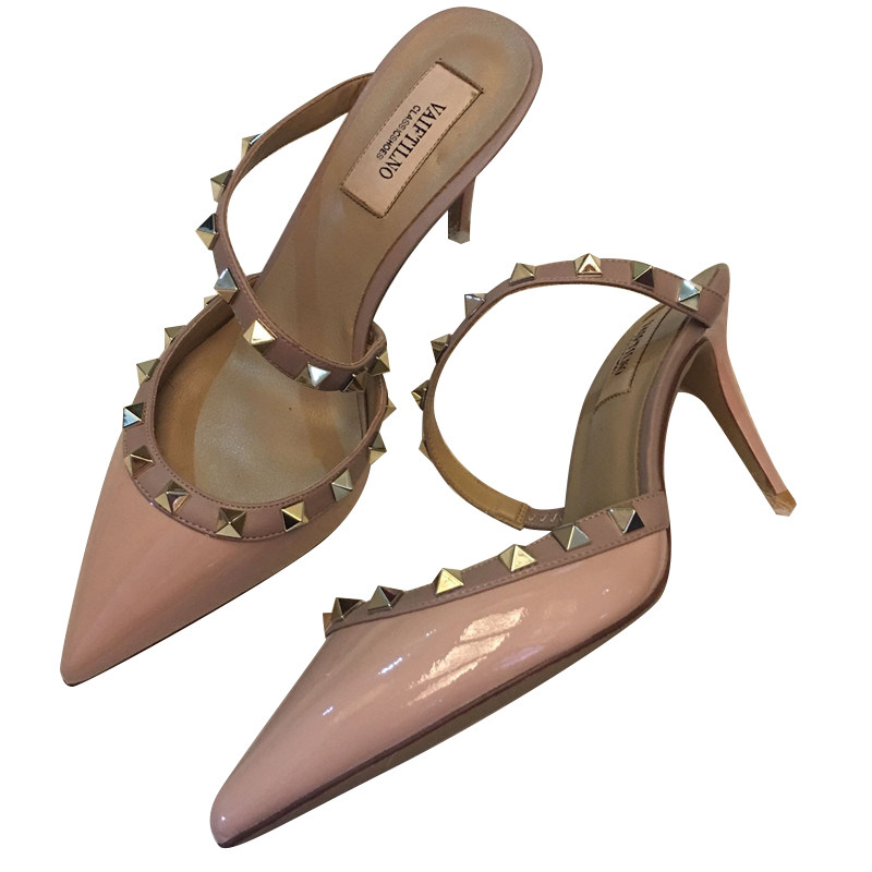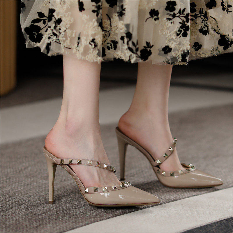 2022 spring and summer rivet pointed high heels leather all-match sandals and slippers outer wear Baotou stiletto sandals half drag women's shoes