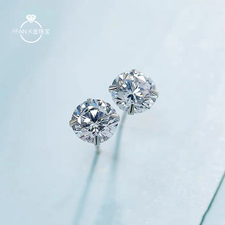 PT950 platinum earrings 18k gold ear studs female moissanite four-claw simulation diamond white gold men's and women's same ear studs