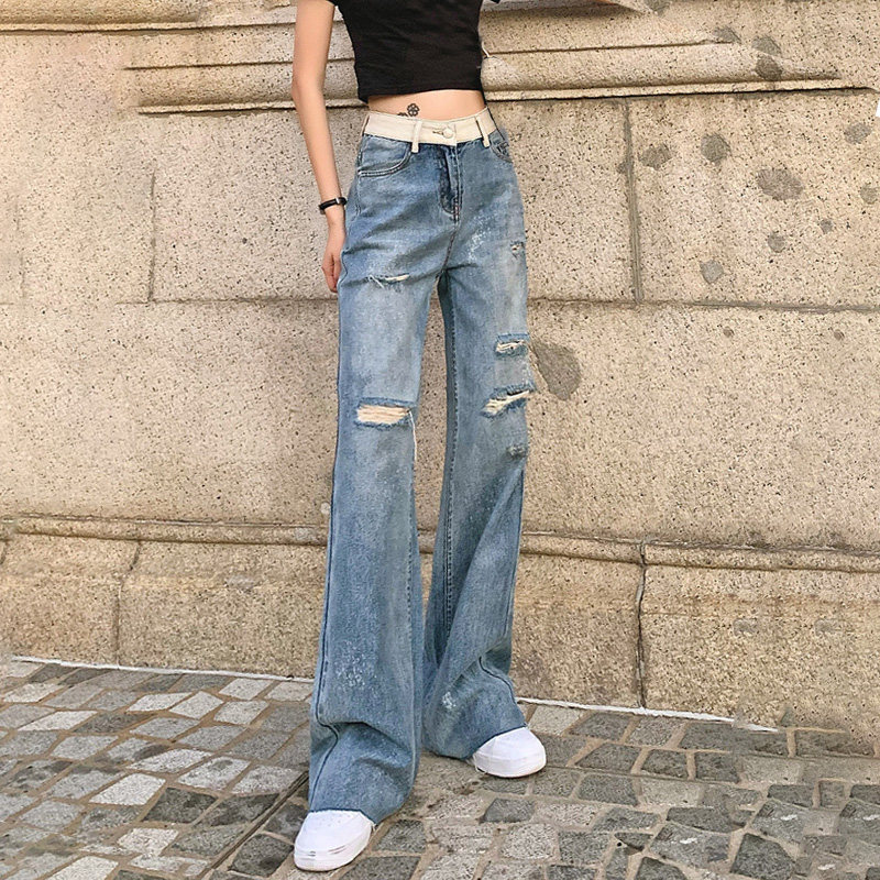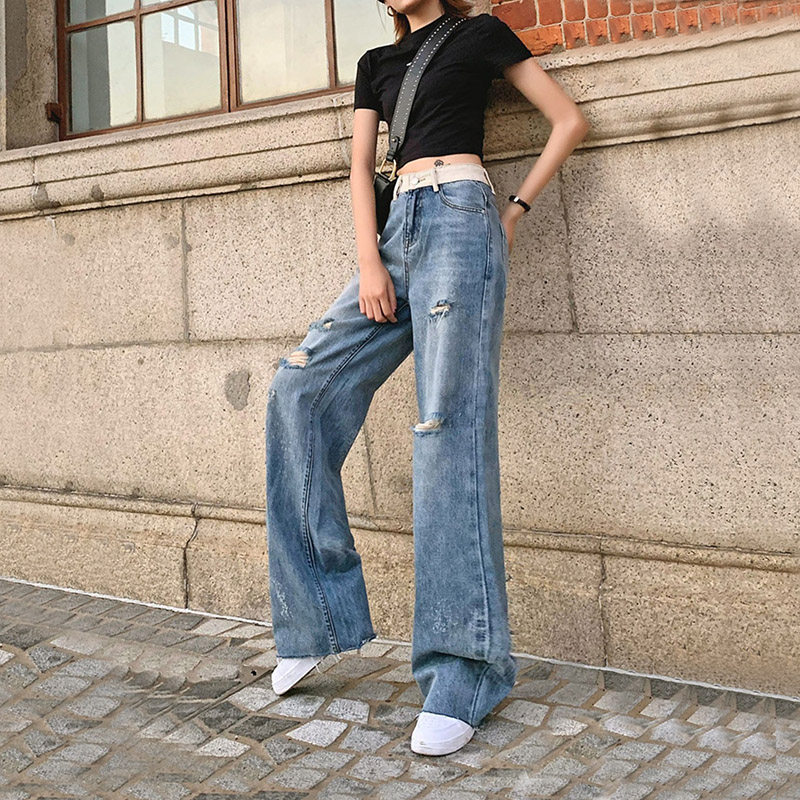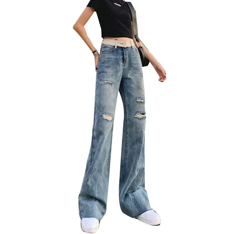 Broken Cave Light Blue Broadlegged Jeans Women Loose 2022 New summer slim slim down High waist Slim Straight Drum Mopping