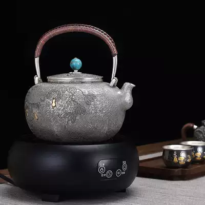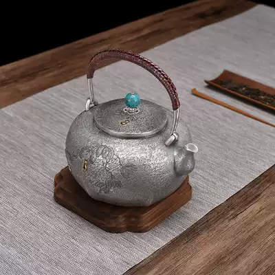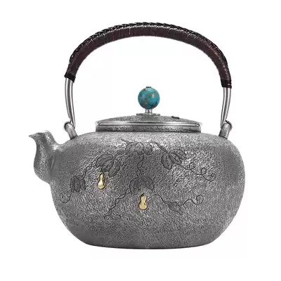 Silver age Fulu silver pot Sterling silver 999 handmade one kettle gilt gourd household boutique tea set