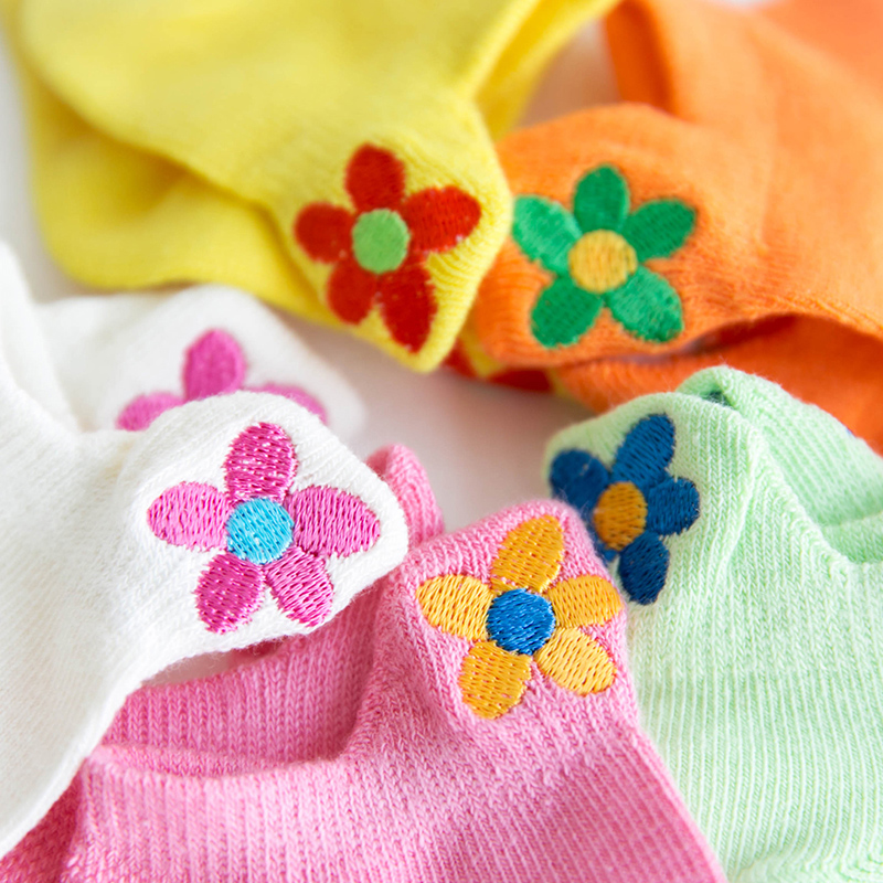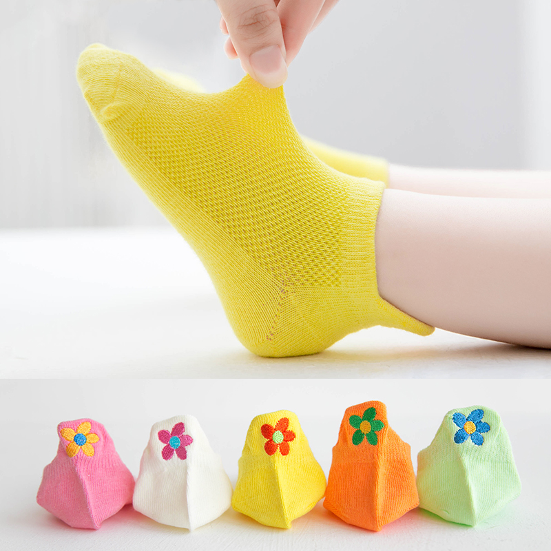 Children's socks spring and summer mesh thin socks small flower embroidery girls three-dimensional invisible socks sweat-absorbing cotton baby socks