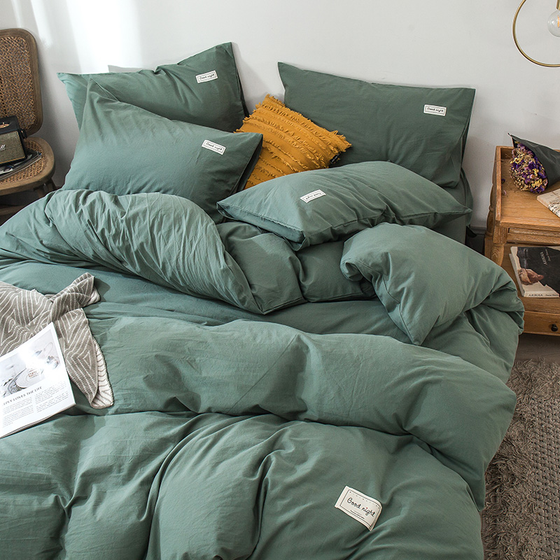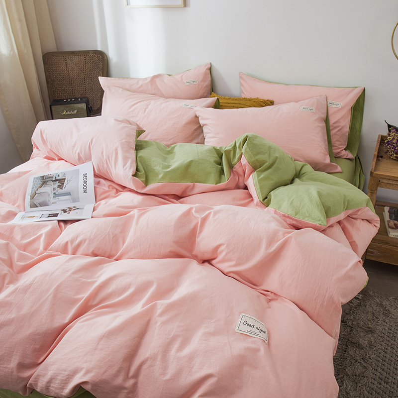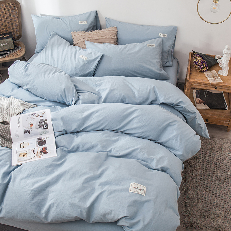 Cotton solid color larry four-piece set Cotton plain color simple fitted sheet bed bag group 1 2m1 5m 1 8 double