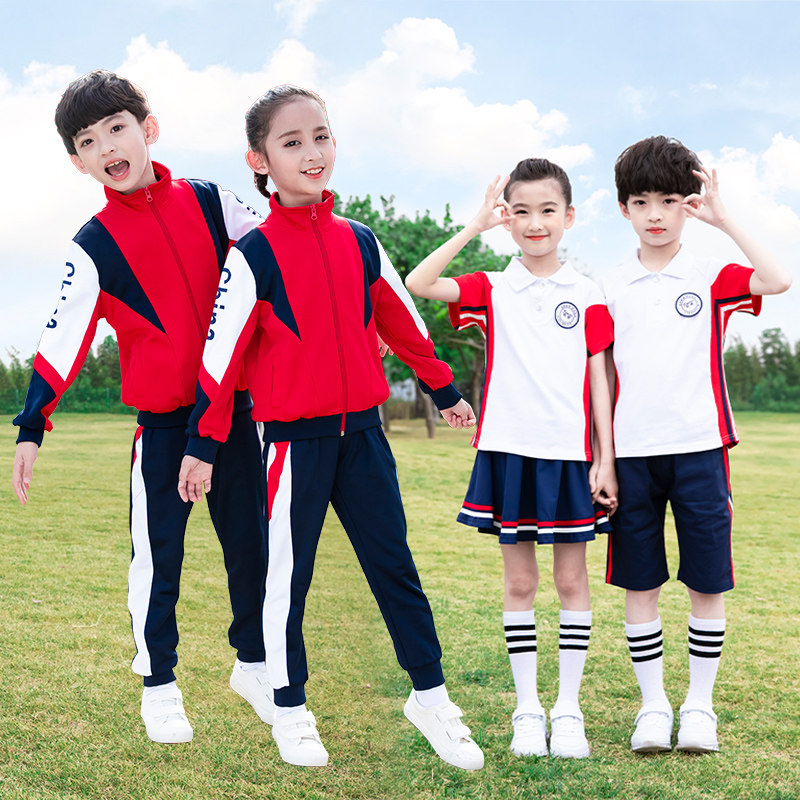 Elementary school uniform spring and autumn set first grade red class uniform children's spring dress kindergarten garden uniform sports three-piece set