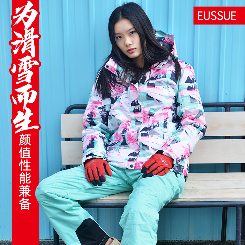 Snowboarding suit women's set Korea winter thick warm suspender pants waterproof windproof outdoor ski suit
