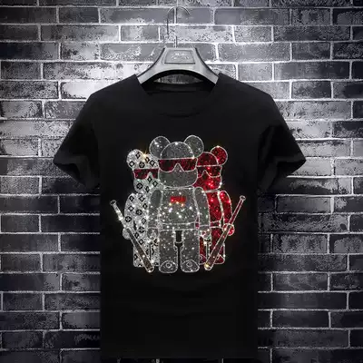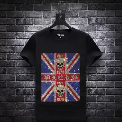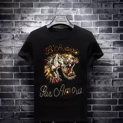 2020 summer Yu Wenle tide brand hot diamond short-sleeved T-shirt men and women couples slim youth bottoming shirt
