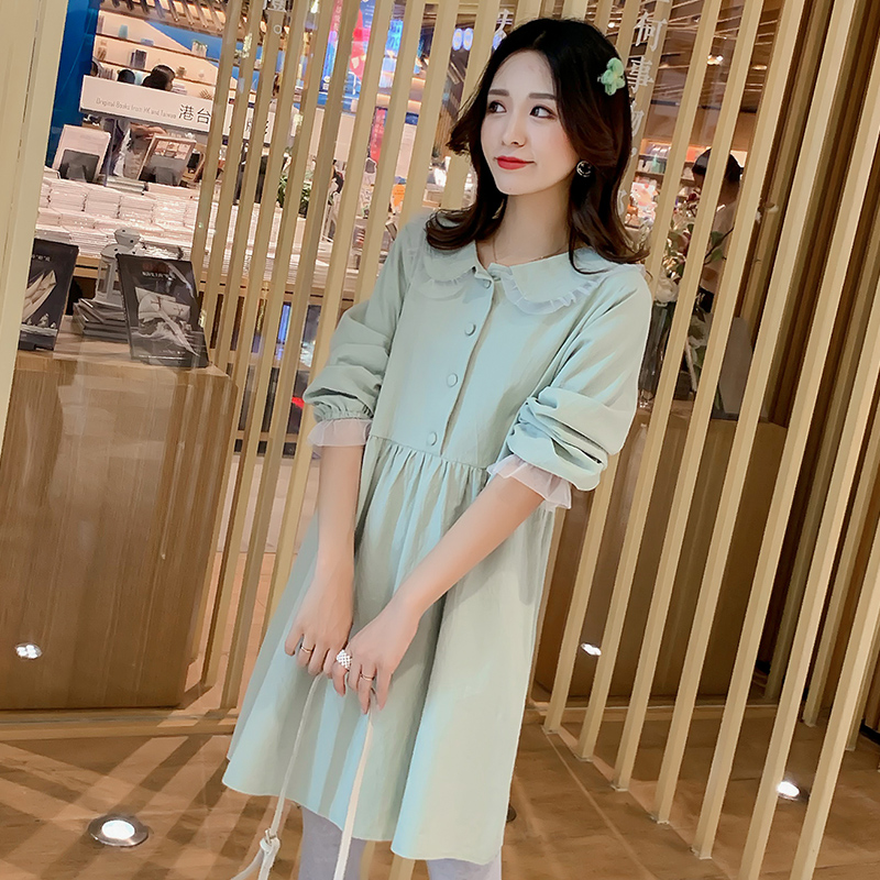 Foreign qi pregnant women fashion hot mom personality spring and autumn doll collar pregnant women dress blouse long loose