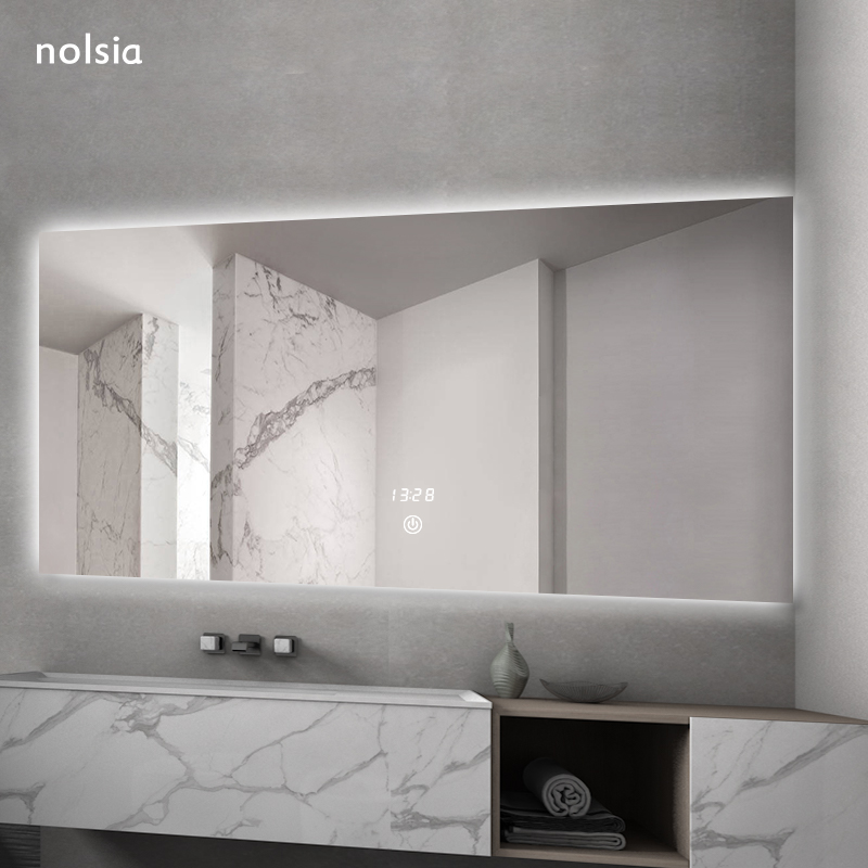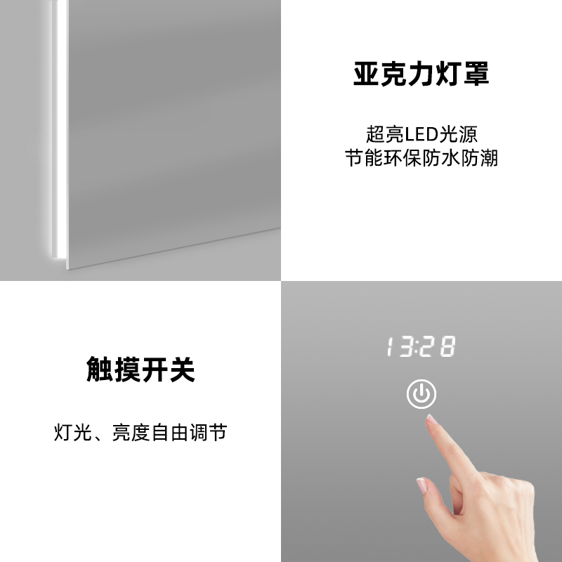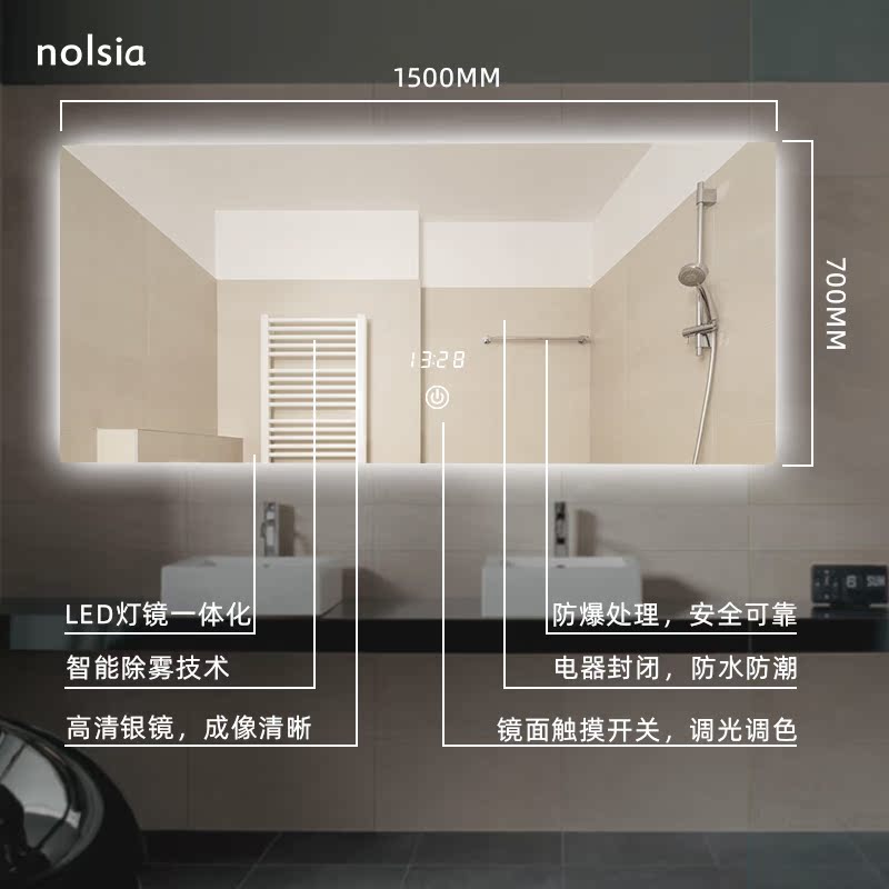 Bathroom mirror with lamp Net red makeup mirror Smart bathroom mirror Wall-mounted powder room mirror Toilet mirror Anti-fog mirror