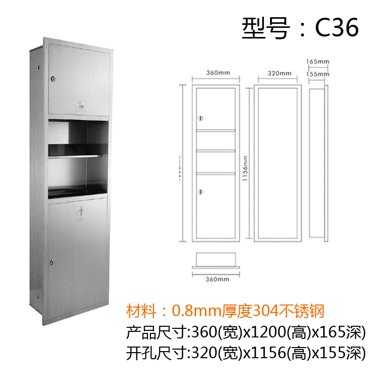 Stainless steel two-in-one bathroom embedded hand dryer concealed hidden drying mobile phone with trash can