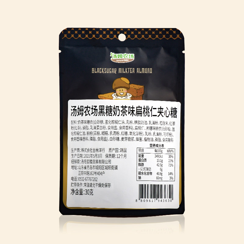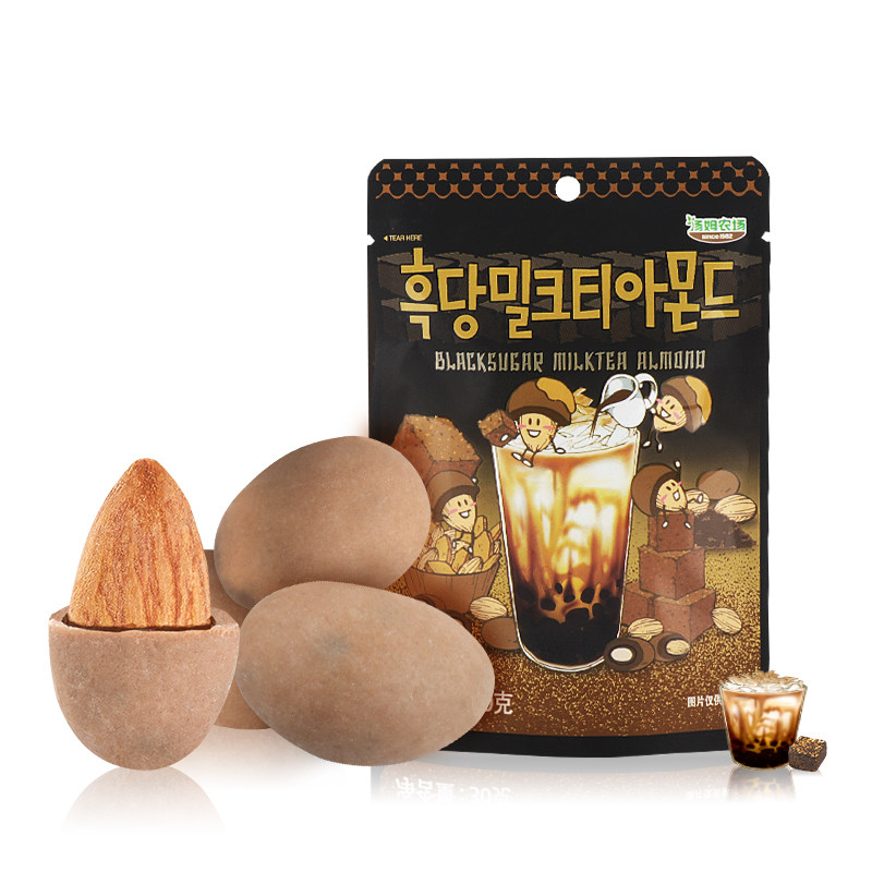 Tom farm Black Sugar Milk Tea Flavored Almond Toms farm Almond Korea Imported Nut Snacks 30g