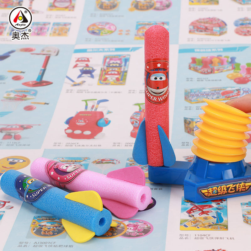 Super Fly-Man Fun Flying Sky Rocket Gun Barrel Air Pressure Ejection Safety Cotton Soft Bomb Indoor Outdoor Toy