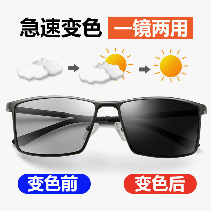 Fashion new men's driving sunglasses full frame aluminum magnesium photosensitive color changing outdoor polarized driving sunglasses night vision goggles
