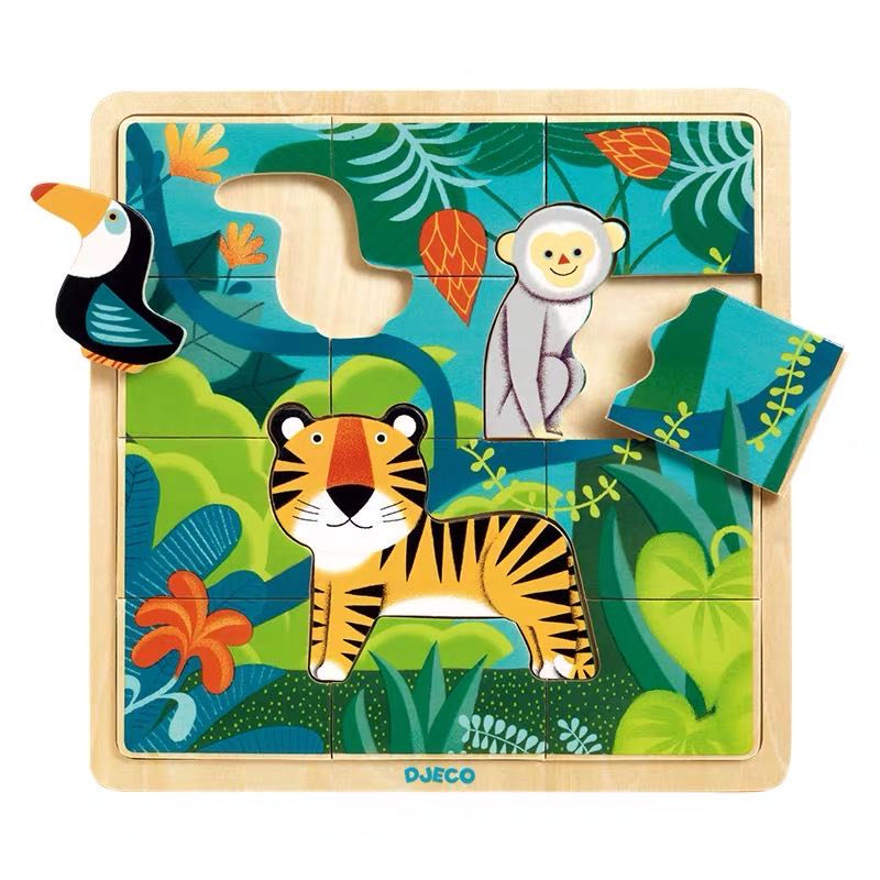 French Djeco Forest Animal Rainforest Children's Large Wooden Jigsaw Puzzle 3-5 Year Old Looking For A Box Puzzle Toy Baby