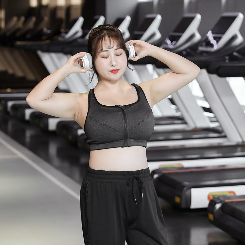Large size sports lingerie woman shockproof running fat mm large chest display small fitness bra high strength anti-sagging 200 catty