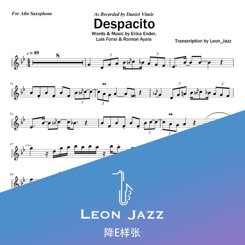 Despacito saxophone music tubing pop divine music score cool SOLO staff accompaniment