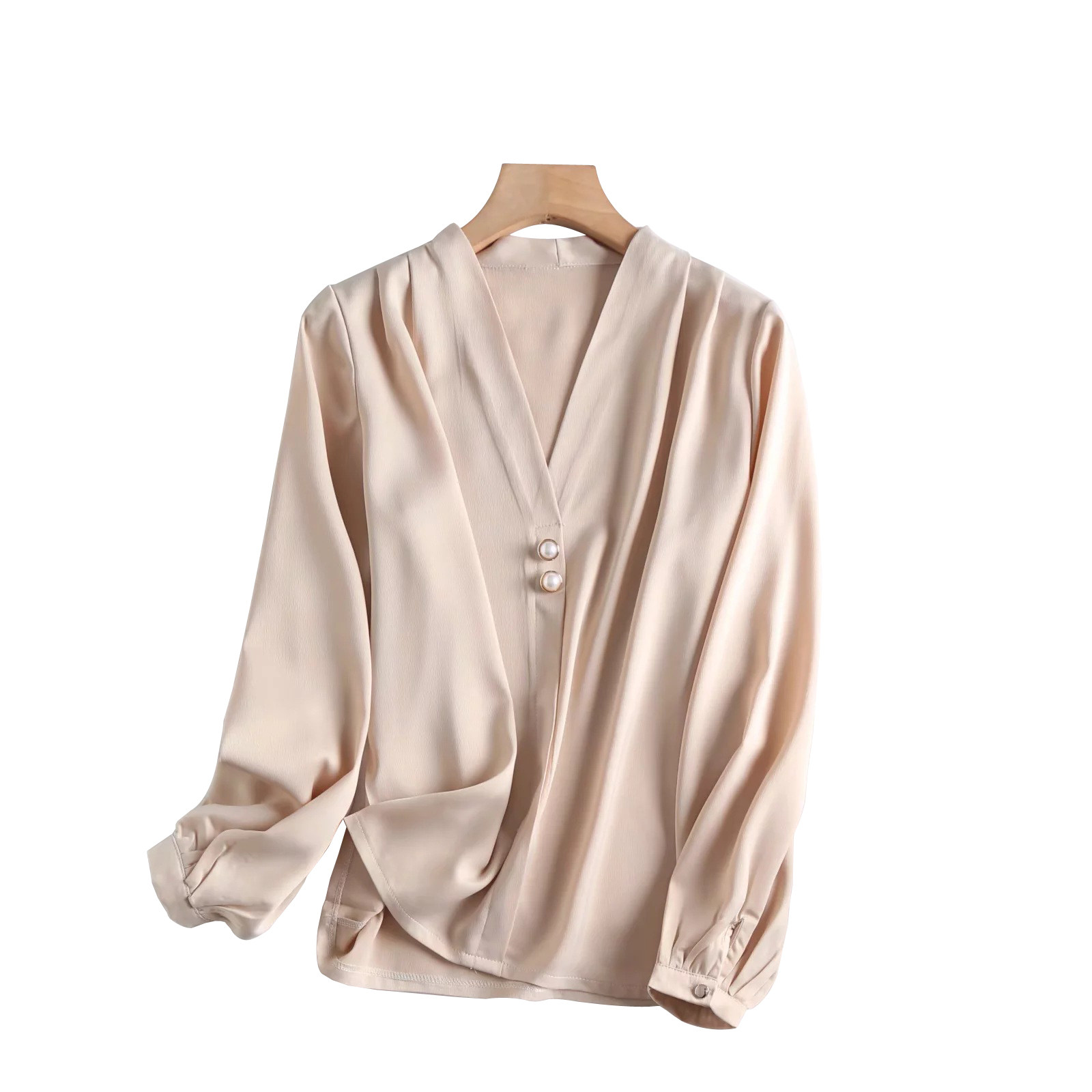 In spring 2023, foreign trade exports France single - tail YU monochtail satin with loose long - sleeved shirt