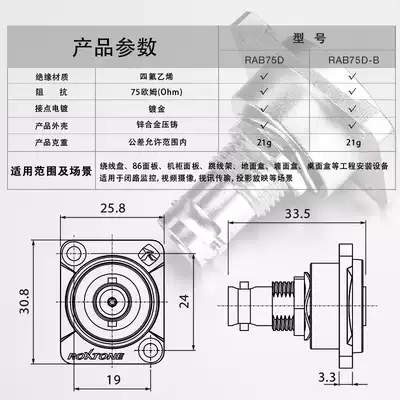 Rocco Stone BNC socket 75 Euro D type Q9 base female to female 86 panel welding-free base coaxial connector