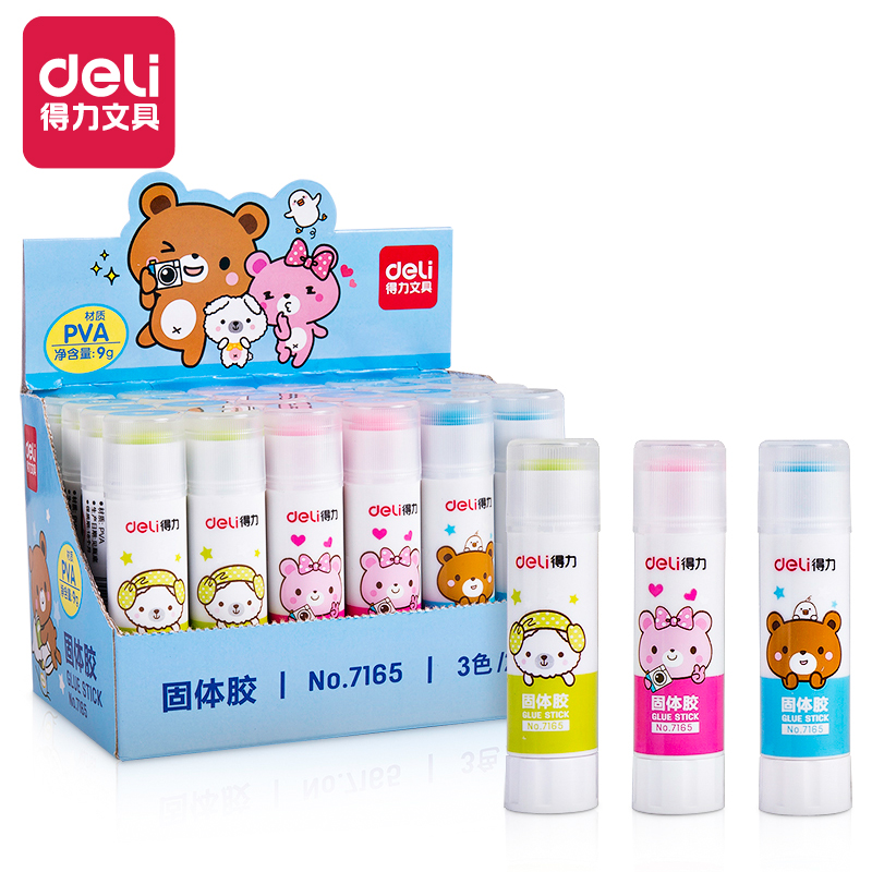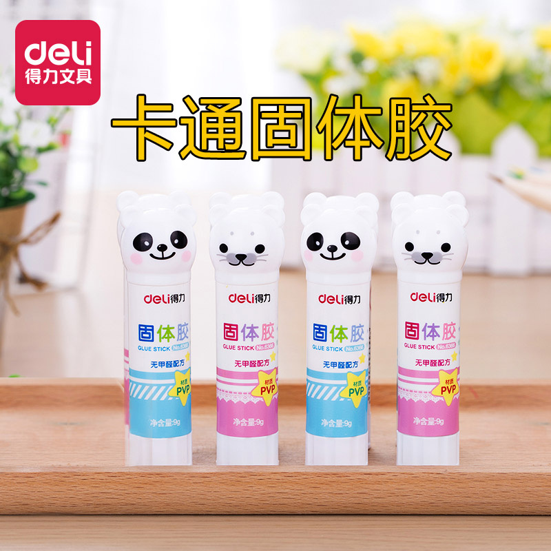 Deli solid glue for students with super sticky cartoon cute girl pen-shaped primary school students kindergarten glue stick Children's baby handmade diy Transparent safe methanol-free high viscosity office use