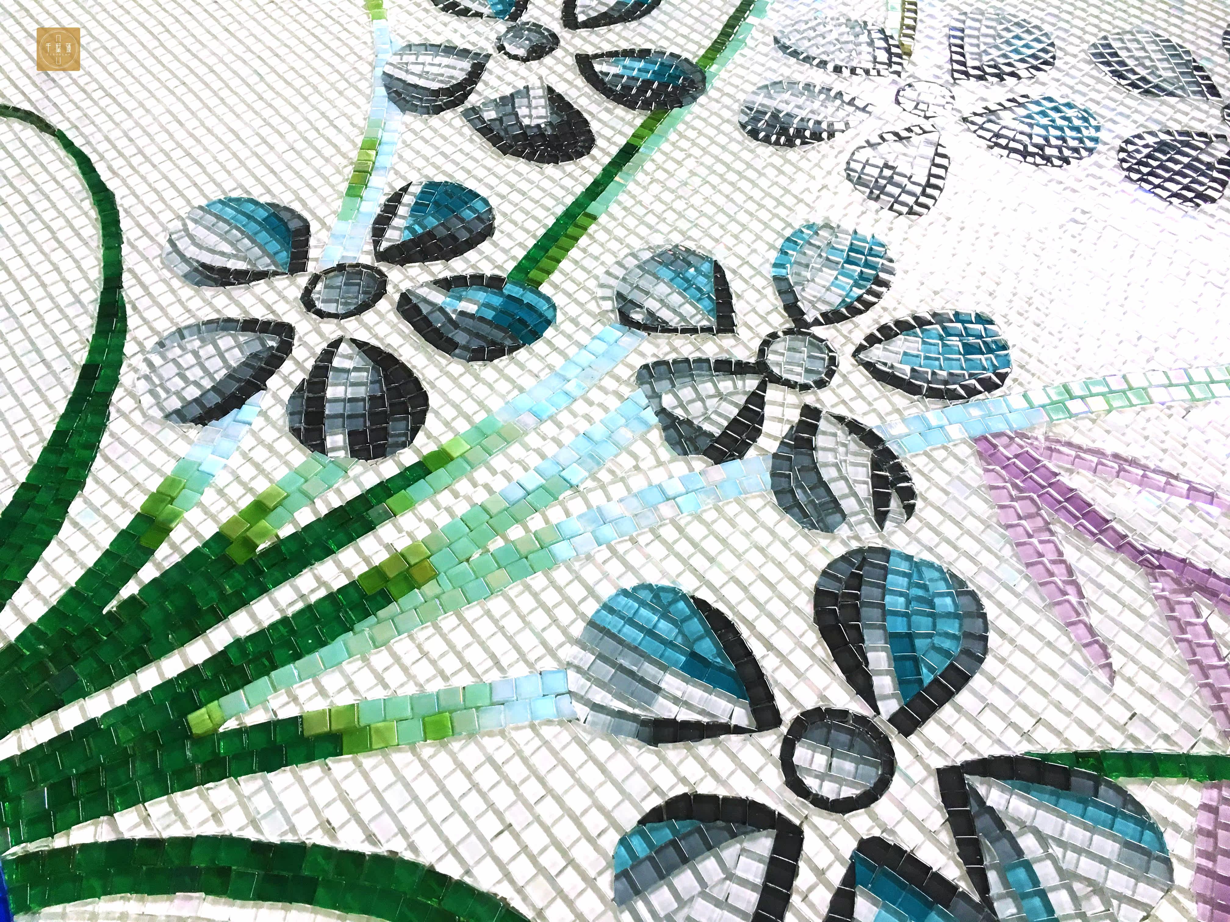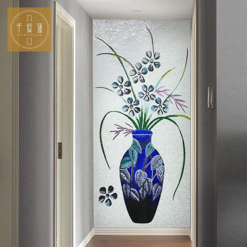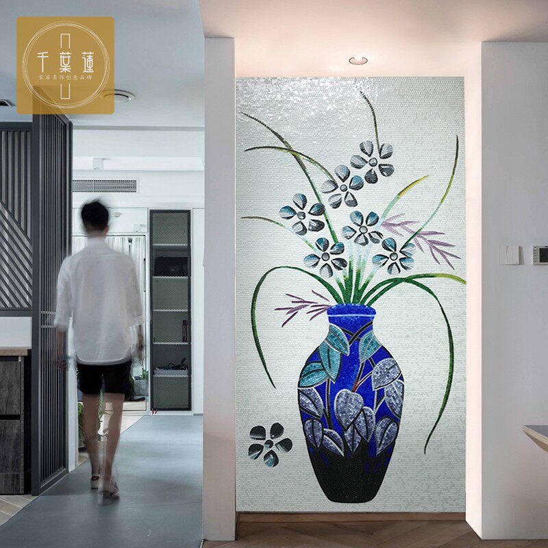 Creative Blue Ceramic Mosaic Screen Background Wall Glass Tile Decoration Art Murals New Chinese