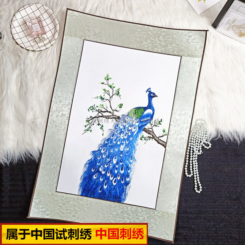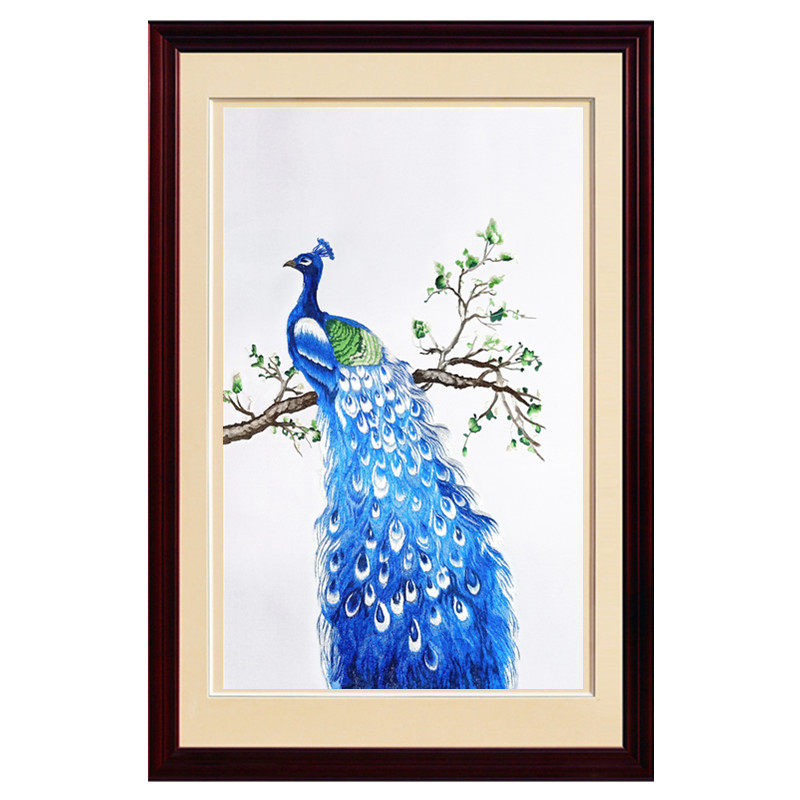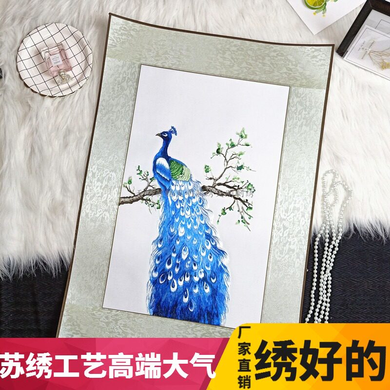 Su embroidery finished product embroidery peacock to send friends wedding gift silk embroidery triptych hanging painting porch hanging painting