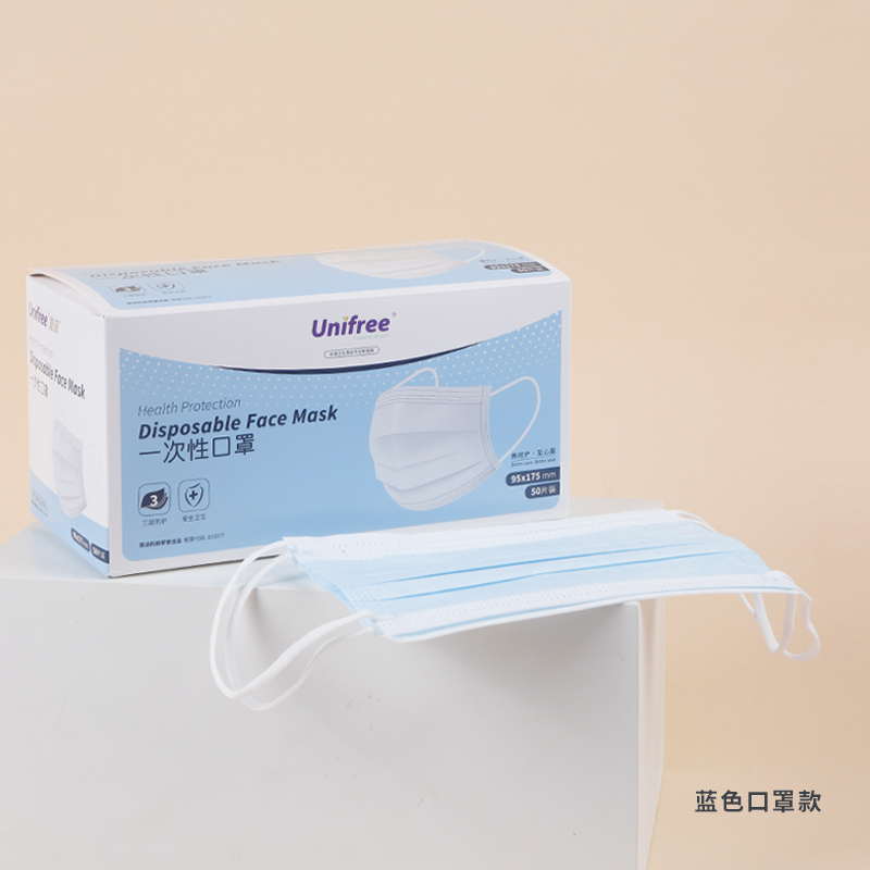 unifree disposable mask three-layer protection with melt spray cloth adult flat thin ear belt mask breathable 50