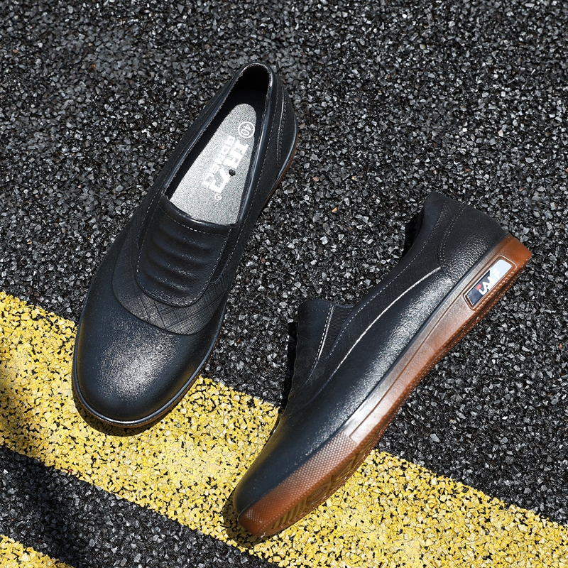 Light Mouth Rain Shoes Men's Fashion Waterproof Shoes Imitation Leather Thickening Rubber Shoes Abrasion Resistant Round Head Labor site Working shoes Non-slip