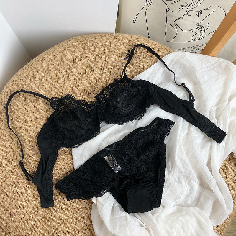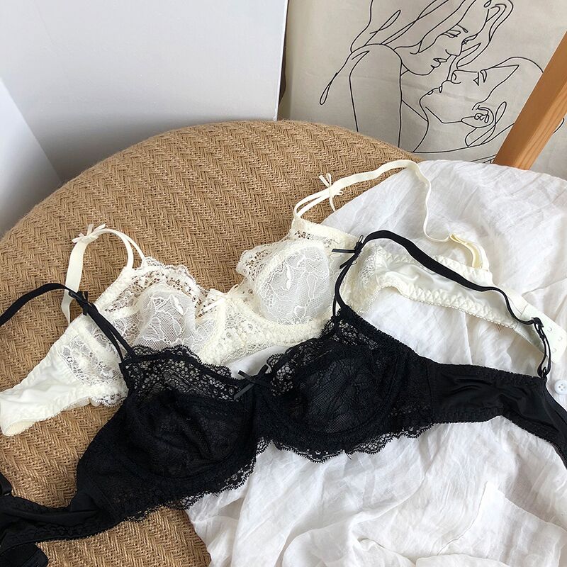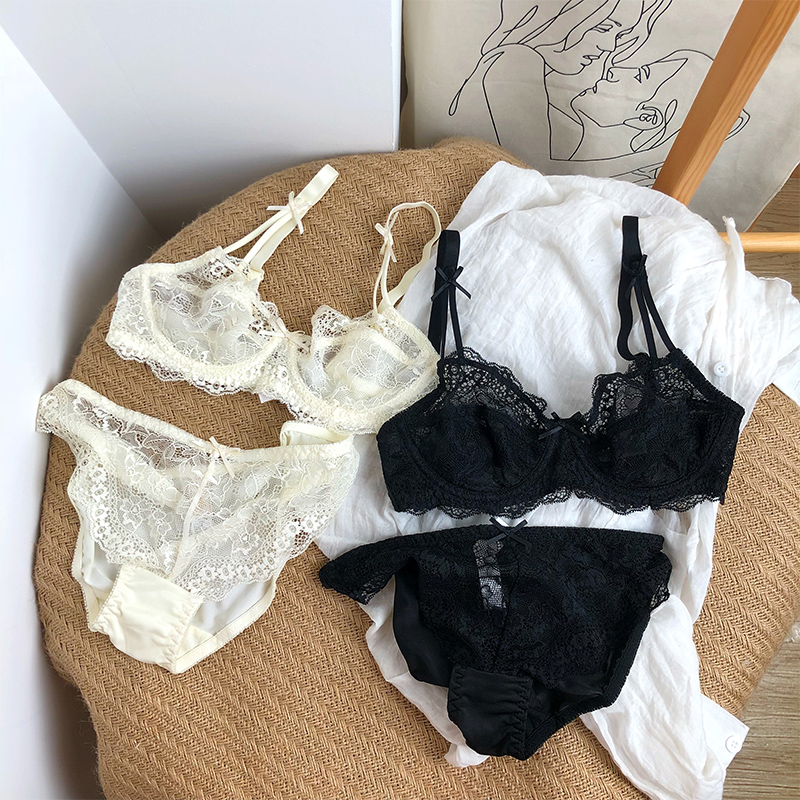 Sexy lingerie female ultra-thin style white lace lingerie large chest display small hollowed-out bra lingerie suit summer