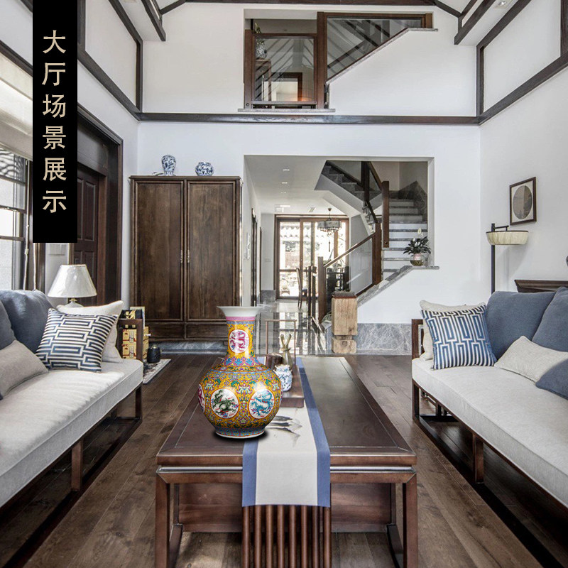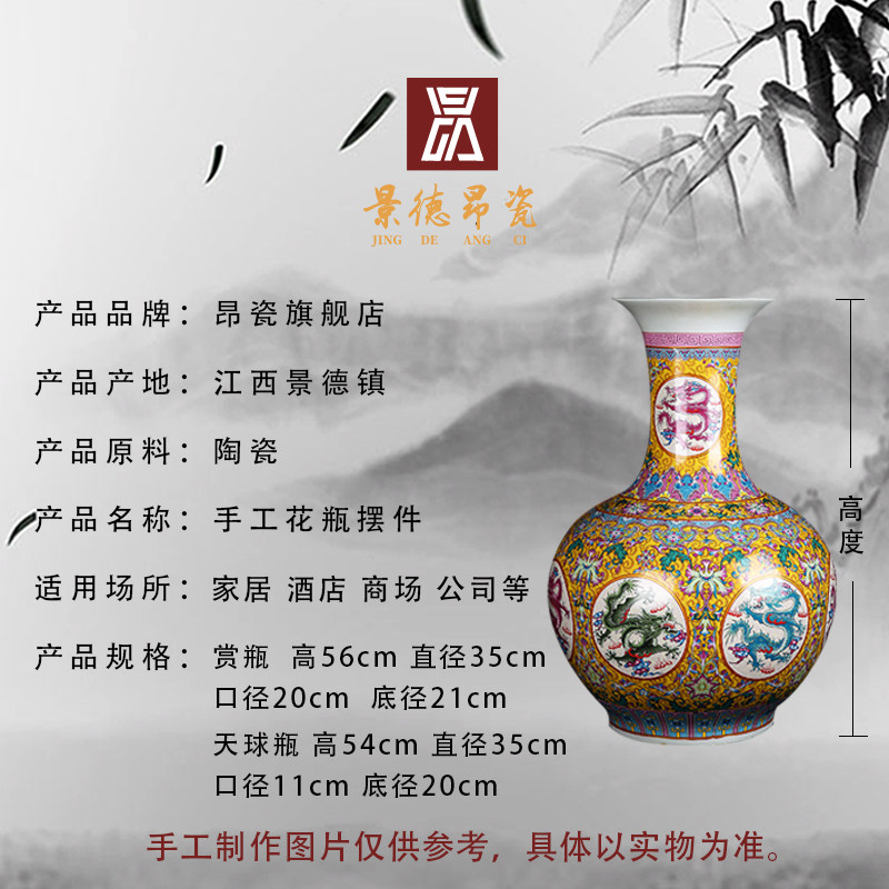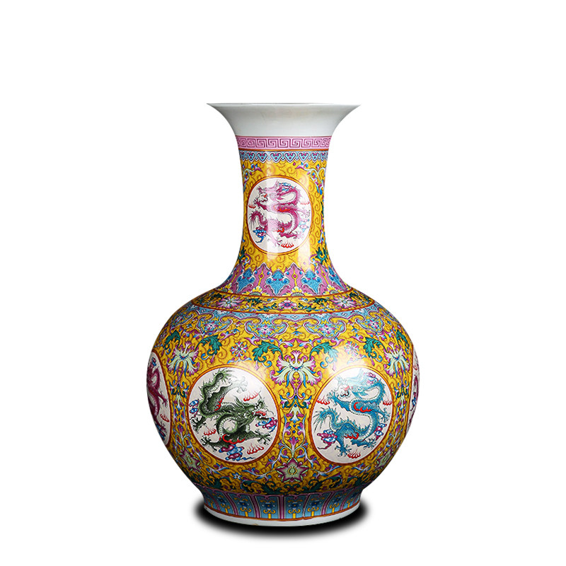 Jingdezhen ceramic vase imitation Qianlong enamel color yellow multicolored dragon large living room decoration corner several ornaments