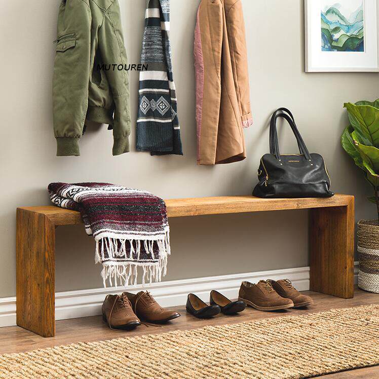Nordic solid wood bench rest area long bench simple dining table stool door change shoe stool clothing store bench