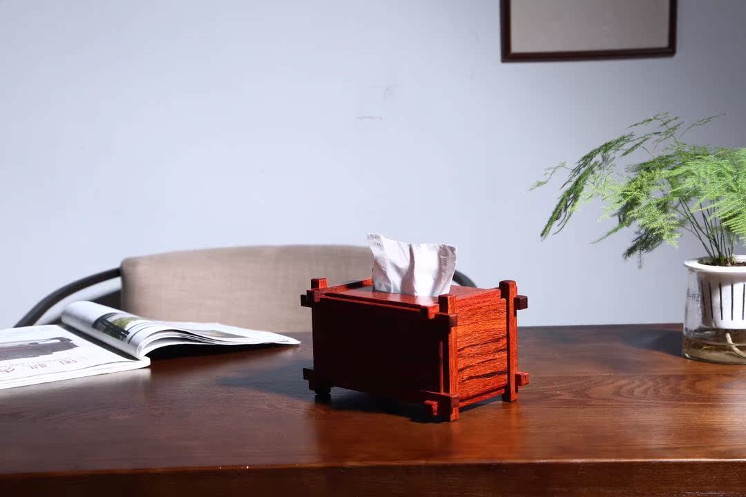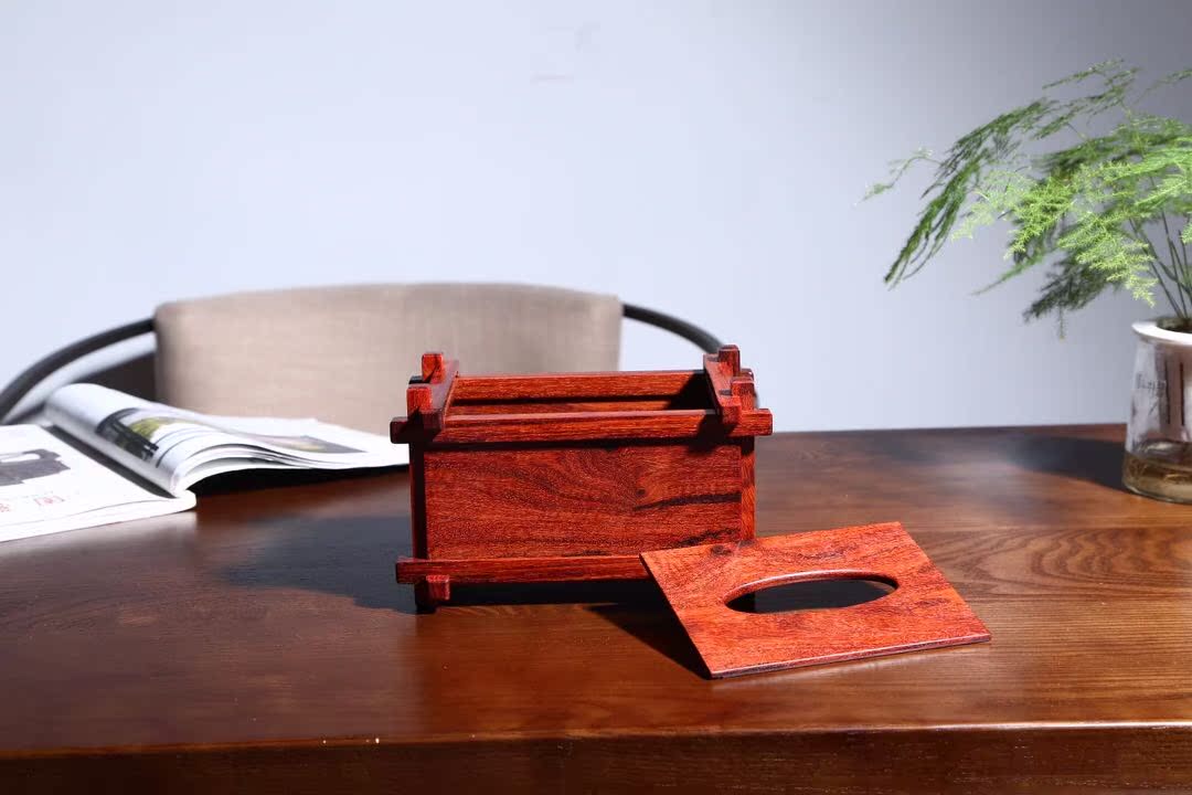Small Leaf Purple Sandalwood Paper Towel Box Full Single Board Red Wood Toilet Paper Box Solid Wood Dining Towel Box Containing Box Desktop Upscale Gift