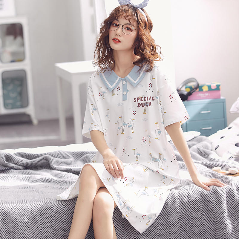 In the summer of 2021, a new cotton short sleeve dress female summer cotton half - sleeved pajamas dress sweet thin home dress